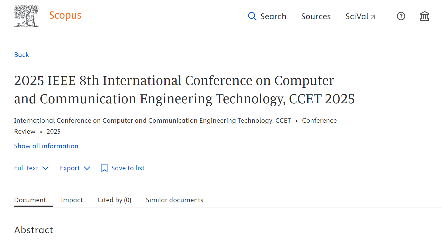 We are excited to announce the 2026 the 9th International Conference on Computer and Communication Engineering Technology (CCET 2026), which will be held in Taiyuan from August 14th to 16th, 2026. The event is mainly co-sponsored by Taiyuan University of Technology and North China University of Technology, co-hosted by University of Science and Technology Beijing, and hosted by School of Software, Taiyuan University of Technology.